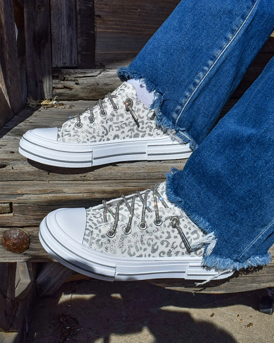 Unleash your wild side with AMAN WHT/SLV. These sassy sneakers feature a daring white and silver leopard print design, perfect for showing off your bold style. Slip them on and step into adventure!