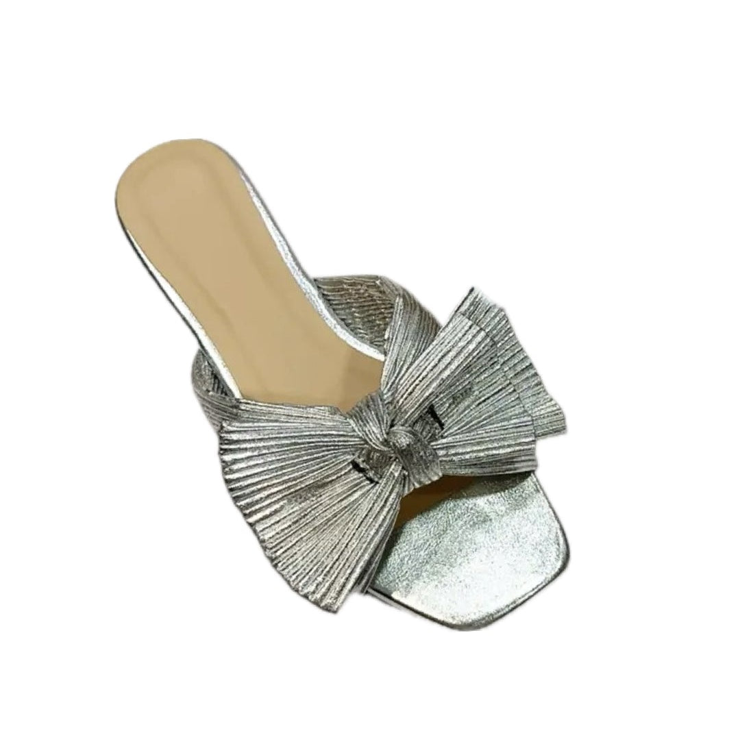 Step out boldly with the BUZZ035 Flat, a silver shoe that shines with playful charm. Its sleek, flat design ensures comfort while the eye-catching bow adds a daring twist to your look. Perfect for those who want to make a statement without sacrificing ease.