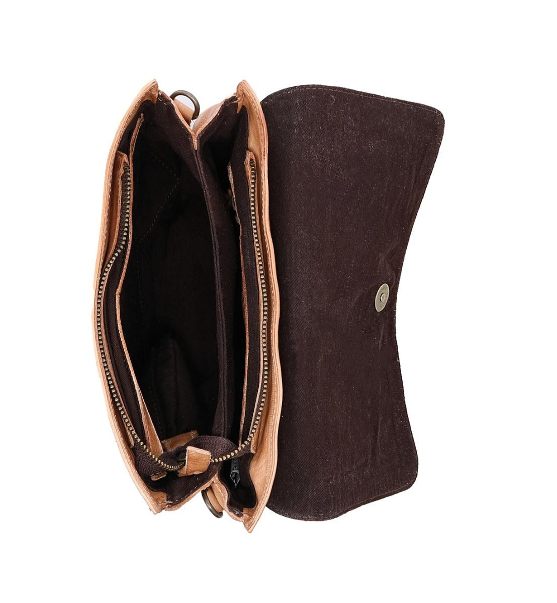 This medium-sized Cleo crossbody purse, crafted from rich tan leather, combines elegance with practicality. Its beautifully detailed stitching enhances the timeless design, offering a refined accessory that complements any outfit while providing convenient hands-free carrying.
