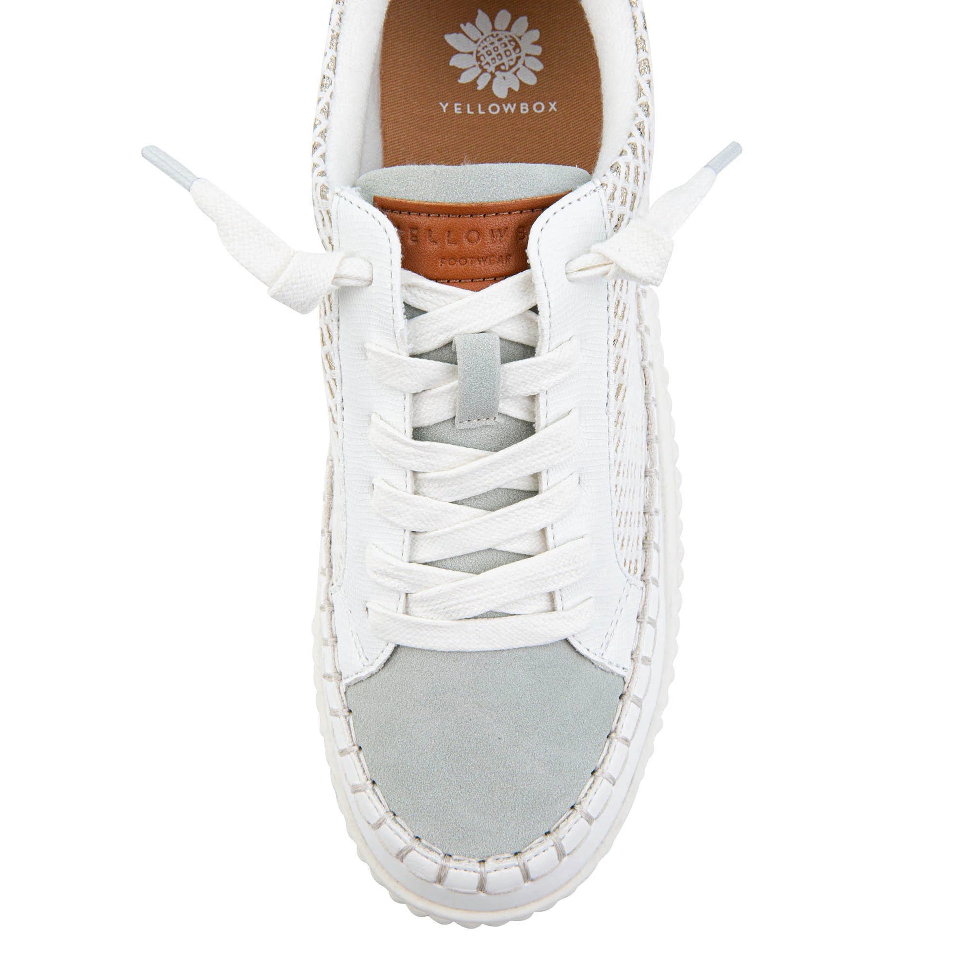 These white MOXIE sneakers are a must-have with their touch of gold from Yellow Box. Add some glamour to your everyday look. Walk with confidence and style in these quirky, one-of-a-kind kicks.