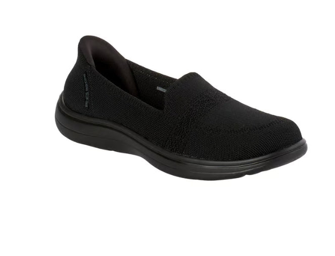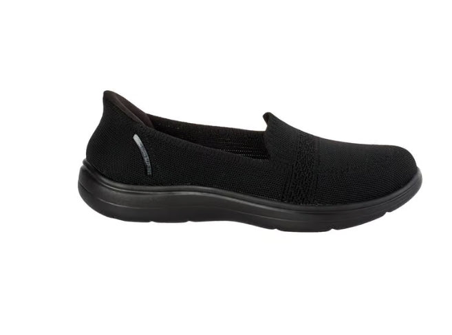 The Skechers On The Go Flix Radia in Black offers stylish, supportive comfort for your everyday activities. Designed with a lightweight, flexible sole and cushioned insole, these flats provide gentle support to keep your feet comfortable all day. Their breathable construction helps maintain freshness, making them an ideal choice for those seeking reliable, comfortable footwear without compromising on style.