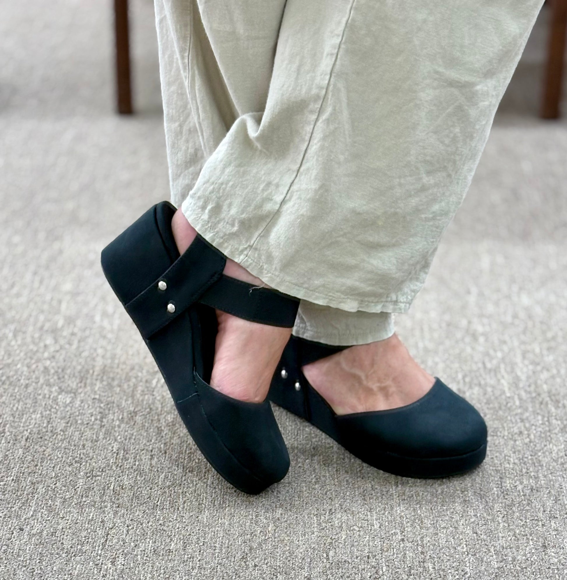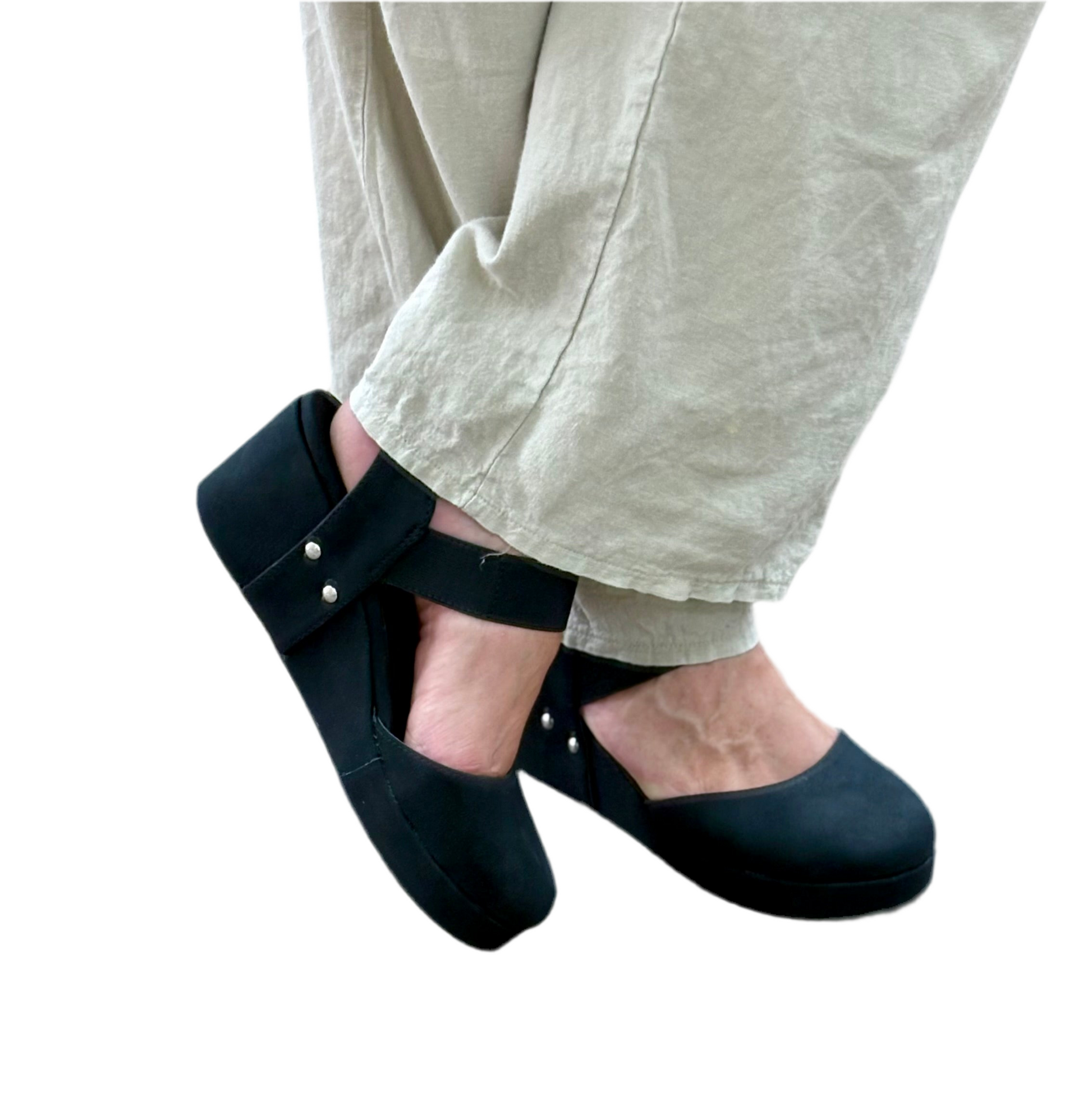 Experience all-day comfort with the REEMA wedge, featuring a black cushioned interior that supports your feet with gentle stability. The wedge design elevates your style while the plush cushion inside reduces pressure, helping you stay comfortable from morning to night. Perfect for those seeking both support and elegance in their footwear.
